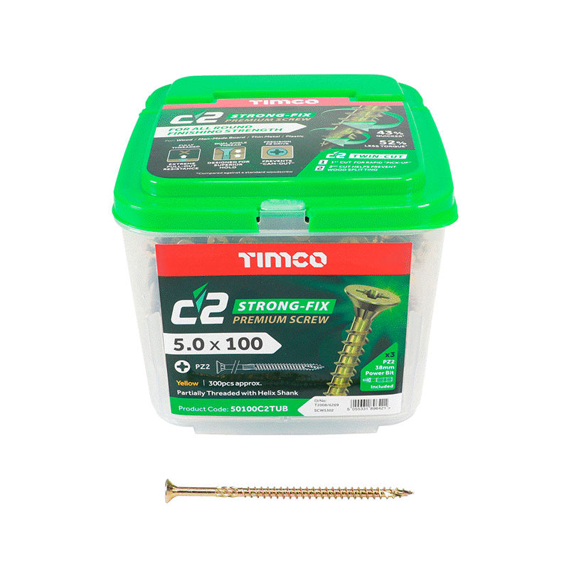 A premium multi-material screw featuring the award winning C2 twin-cut technology. The dual angle full thread design ensures maximum pull-out strength on every fixing. Ideal for applications when optimum holding force is required such as hinges, brackets and high load environments.