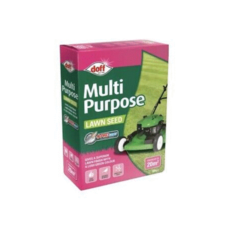 The Doff multi-purpose lawn seed can be used to both repair an existing lawn or to completely sow a new lawn. The seed mixture creates a lush green, hard wearing lawn. An ideal lawn seed mixture for overseeding in the Spring and in the Autumn. For best results, sow between March and September. Touch up may be necessary if applying the lawn seed after September and before March. Covers an area of approximately 40 square metres.